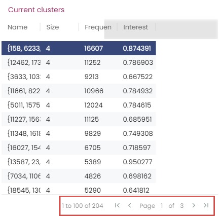 Interest: a value between 0 and 1. Clusters with interest close to 1 are the most informative.