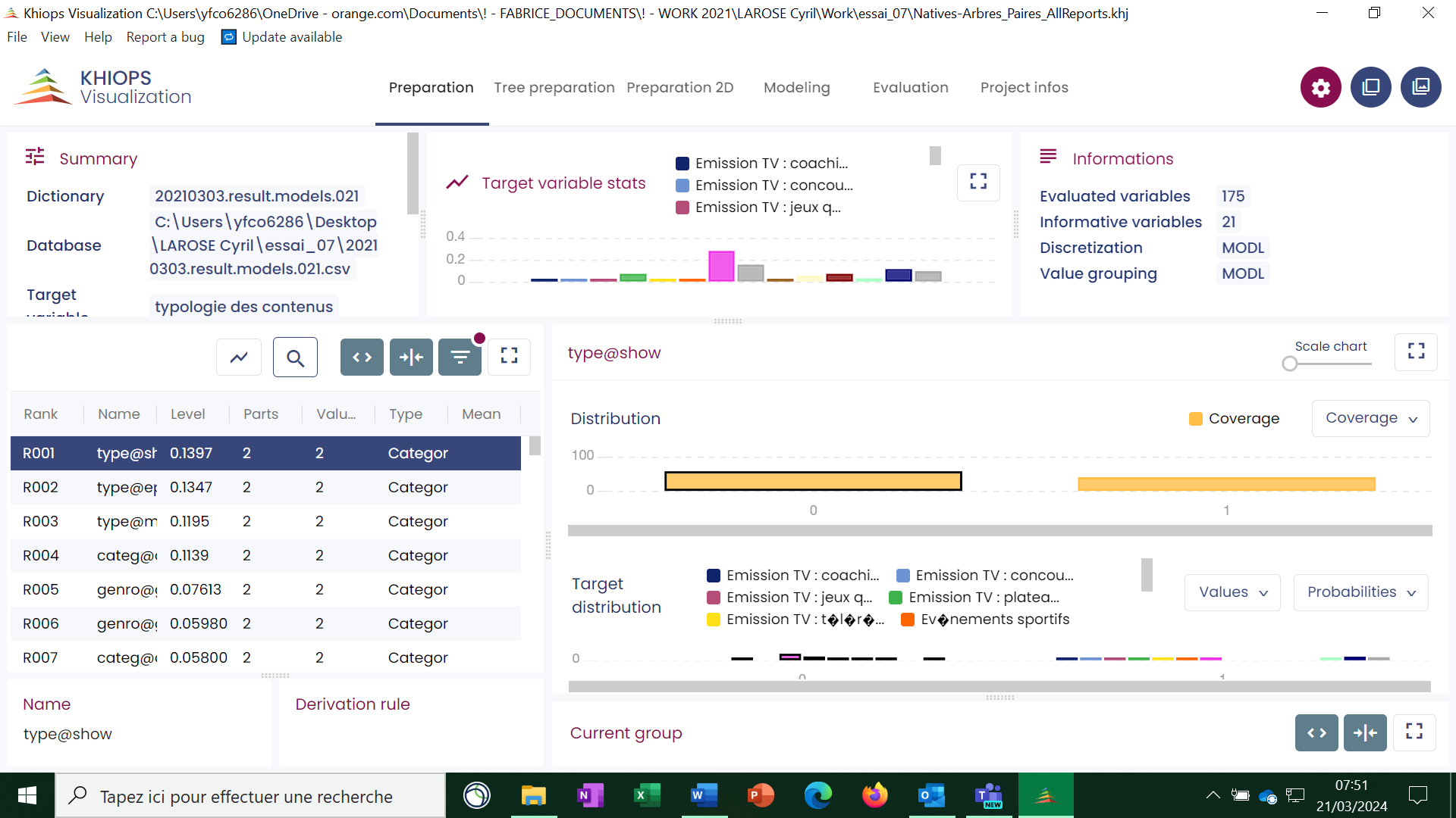 Tree preparation : displays the preparation report for tree variables